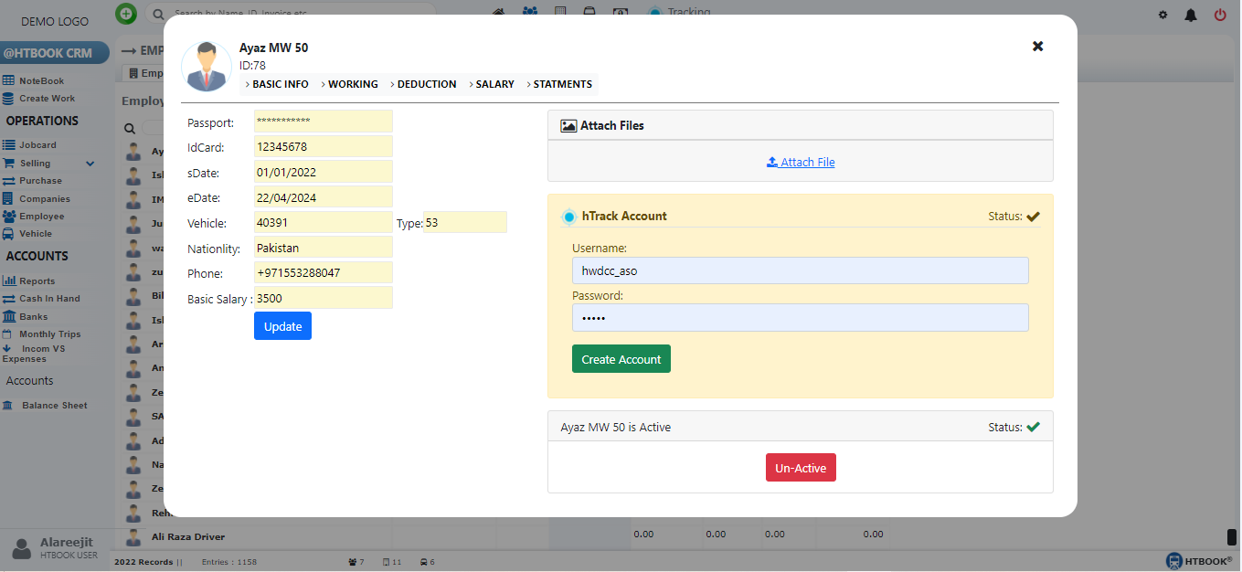 DeductionThis amount charge from employee by salary for( Police Fine, Visa, Registeration, Adavance Salary, etc.)