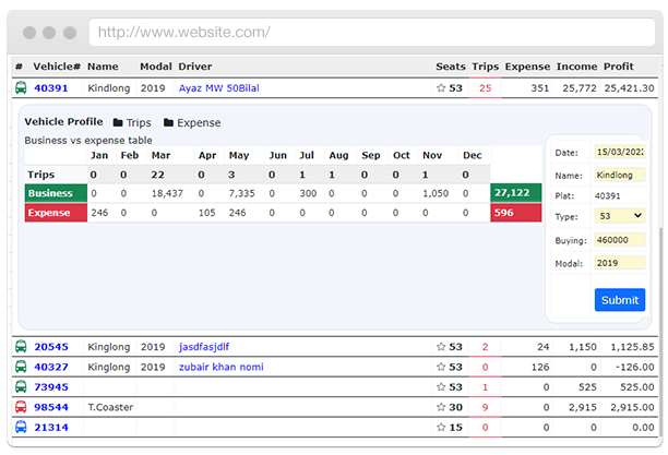 Add and supervise all the trips made by your vehicles, and also supervise the bills. Organizing a profile about the vehicles and knowing all the details in order to manage the vehicles in an efficient manner without getting tired.