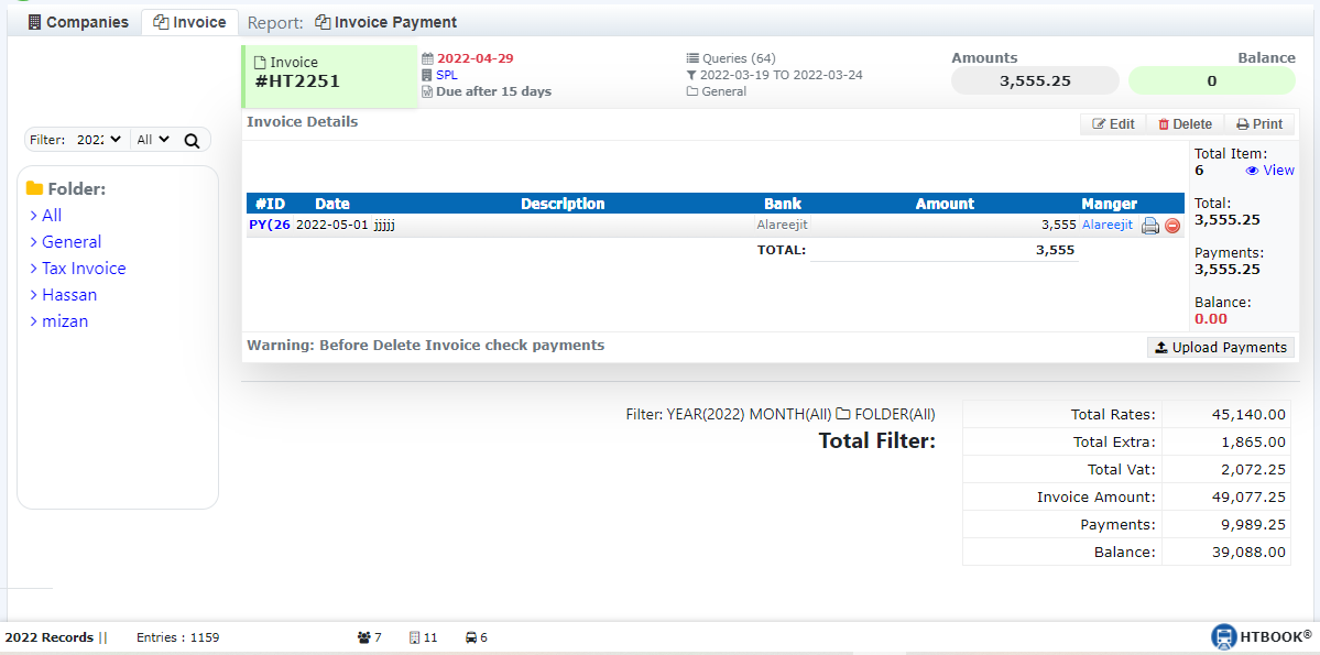 Using HTBook TMS to Save time and create invoices in minutes once the work is completed. The system provides flexibility in working with the ability to change accounts and the amount
